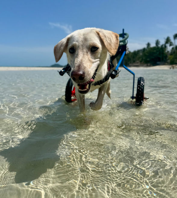 Then she gave me a wheelchair. Now I’m just as fast as I used to be on four legs. I race all the way to the beach with my new friends. It’s wonderful here. I have so many friends to play with.
